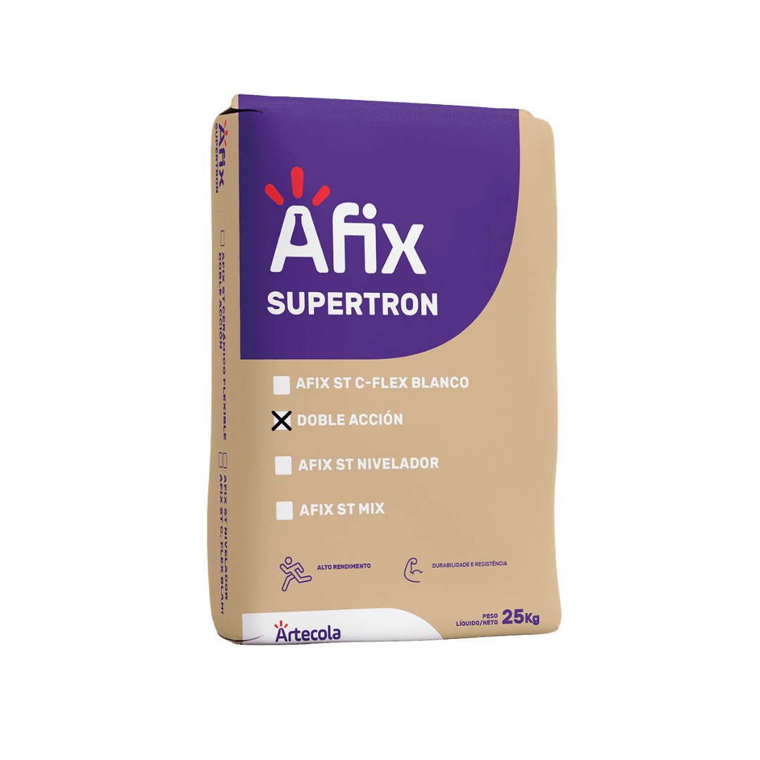 Afix ST Porcelanato de Doble acción, es un adhesivo en polvo de doble acción cuya fórmula a base de cementos áridos y aditivos especiales crean un producto de alta calidad y desempeño.