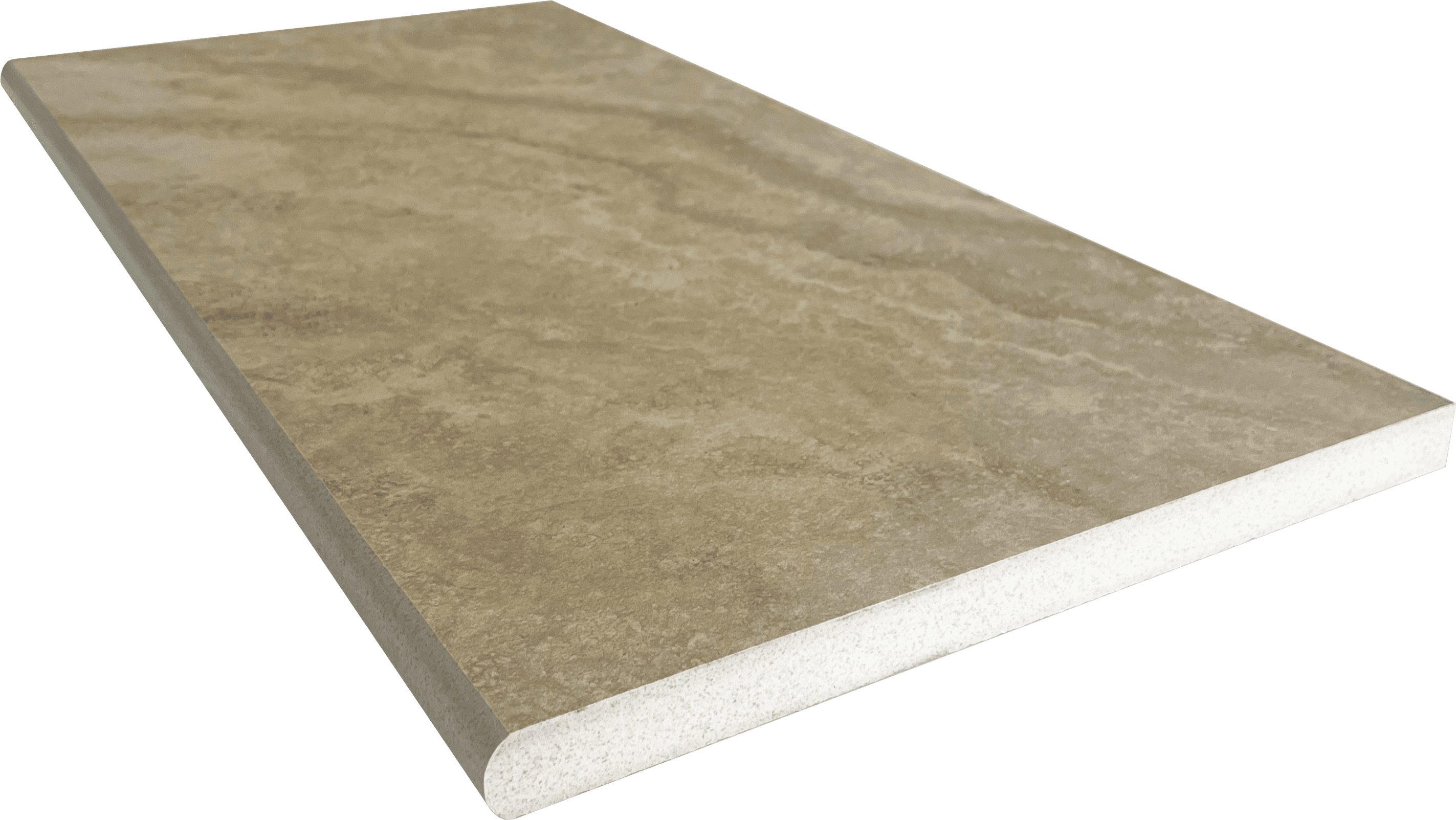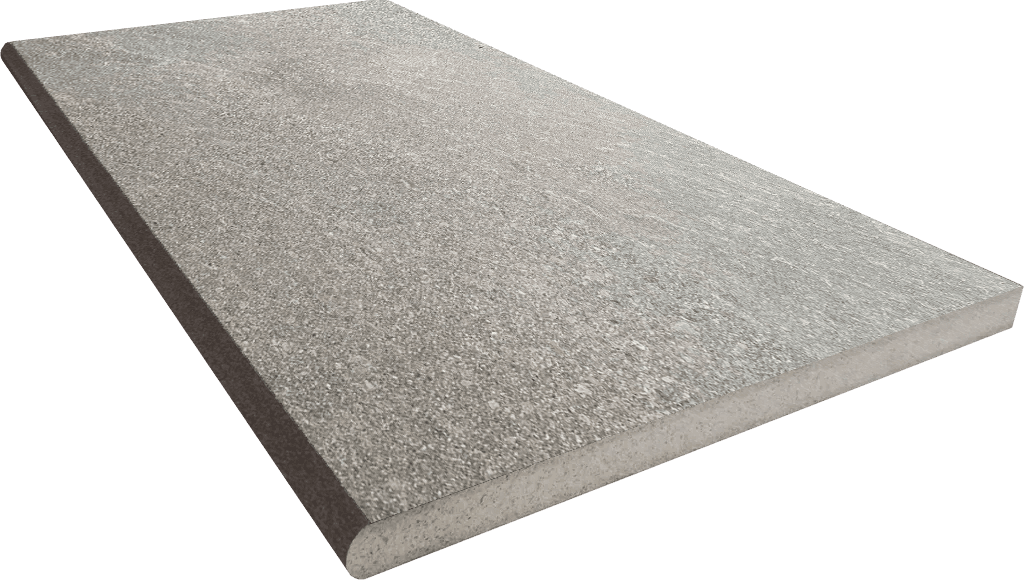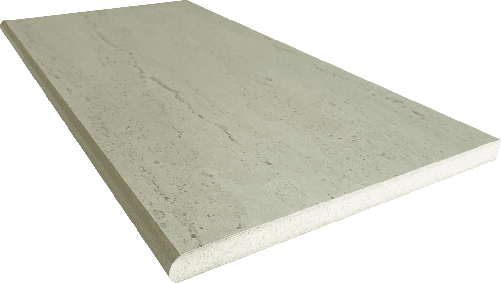 Borde de piscina de Porcelanato con Rodon anti-slip R11, tipo Mármol.